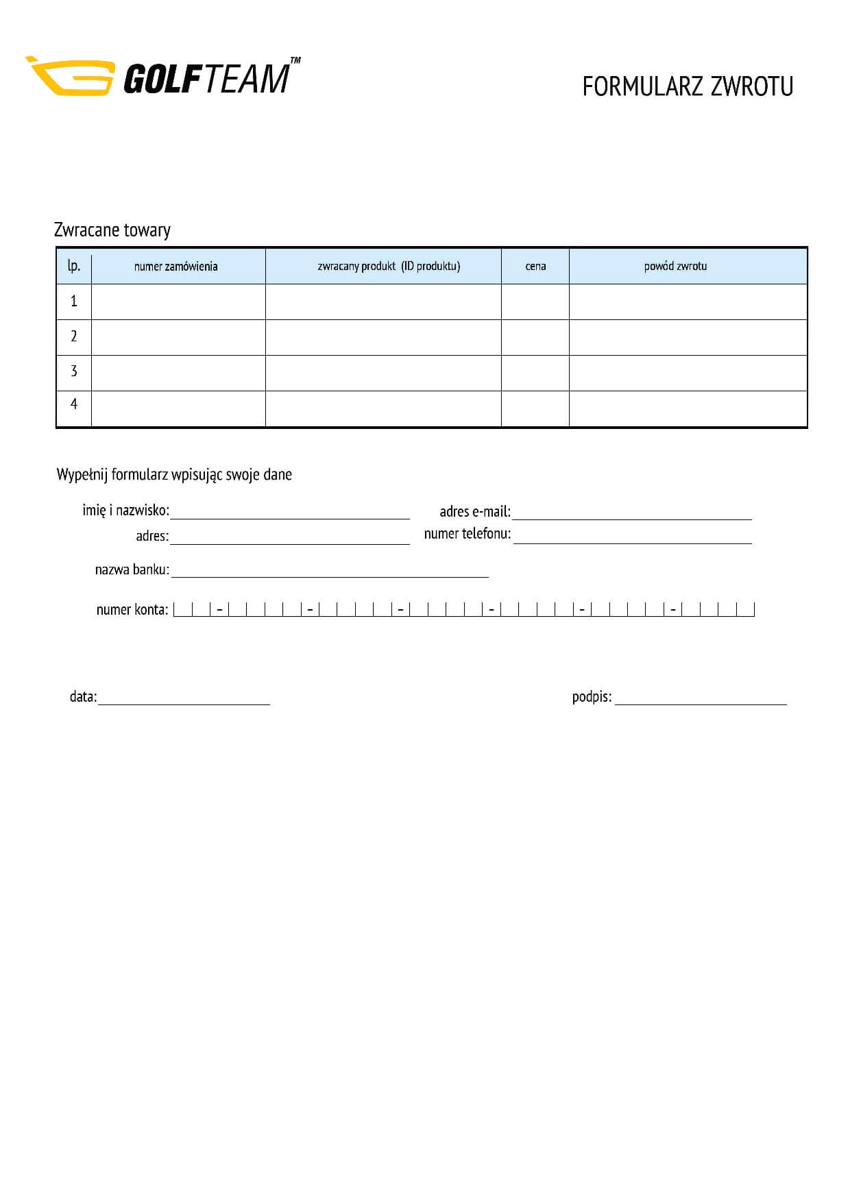 2.4.3. w formie elektronicznej za pośrednictwem poczty elektronicznej na adres: sklep@golfteam.pl;