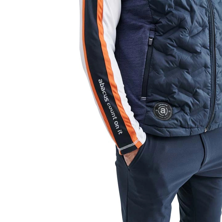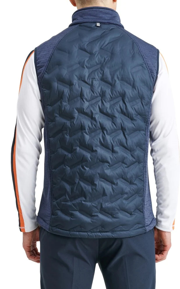 Kamizelka Elgin Hybrid ma bezszwową, pikowaną tkaninę wiatroszczelną, która jest wyściełana z przodu i z tyłu ciała. Panele boczne i ramiona są wykonane z bardzo rozciągliwego polaru. Polar jest szczotkowany od wewnątrz i ma kwadratowy wzór dla lepszej cyrkulacji powietrza, który utrzyma Cię w cieple. Elastyczne wiązanie przy otworach na ręce utrzymuje wiatr na zewnątrz. Zamek błyskawiczny na całej długości z przodu z odblaskową lamówką i dwiema kieszeniami z przodu.
