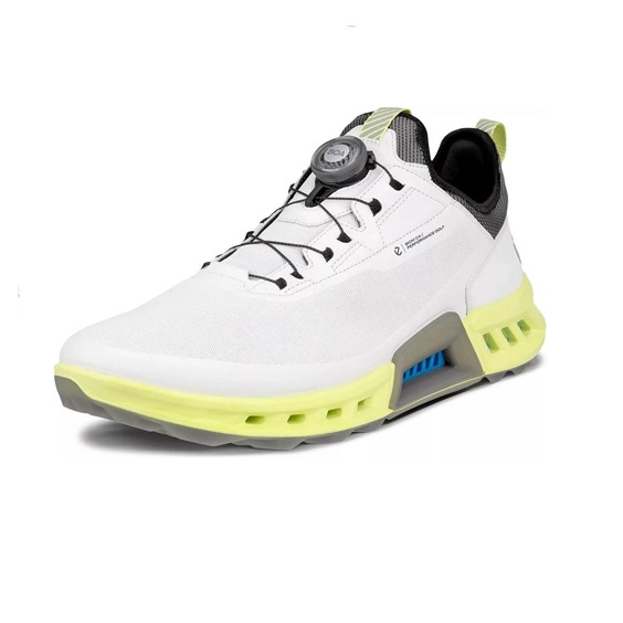 Oddychający komfort i innowacyjna wydajność łączą się z nowoczesną estetyką w ECCO M GOLF BIOM® C4, nowej generacji modelu BIOM® COOL PRO. Aby zapewnić 360-stopniową oddychalność i 100% wodoodporność, konstrukcja GORE-TEX SURROUND® jest połączona z EXHAUST GRID, która umożliwia wentylację powietrza w kierunku podeszwy stopy. Wykonana z ECCO Performance Leather i nowej, super rozciągliwej siatkowej skarpety, hybryda jest osadzona na progresywnej podeszwie ECCO MTN GRIP i zasilana przez BIOM® NATURAL MOTION® Technology.