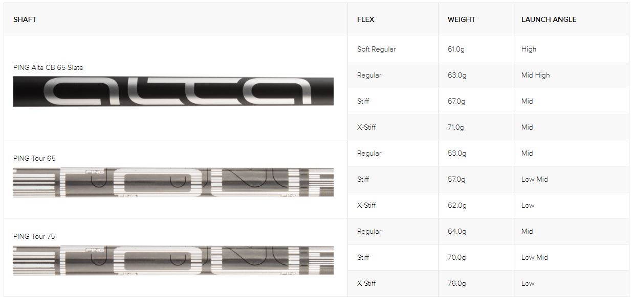 Aldila Rogue White zapewnia linioe, stabilne odczucie, niski spin oraz nisko-średnią trajektrorię lotu piłki. Mitsubishi Tensei AV Orange zapewnia średnio-wysoką trajektorię i jest shaftem counterbalannce co zapewnia dodatkową stabilność i kontrolę