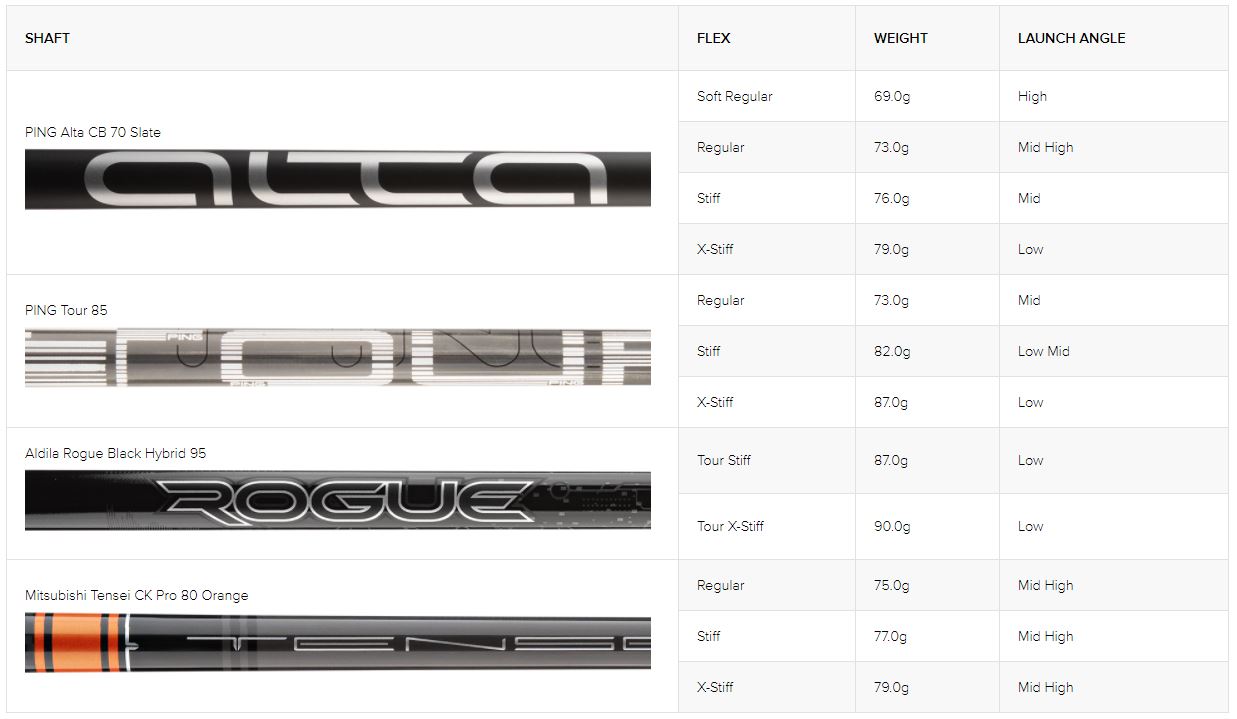 Aldila Rogue Black 95 Hybrid zapewnia niski tor lotu piłki, niski kąt torque i nisko-średni spin. Mitsubishi Tensei AV Orange 80 zapewnia średnią trajektorię i jest shaftem counterbalannce co zapewnia dodatkową stabilność i kontrolę.