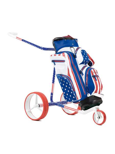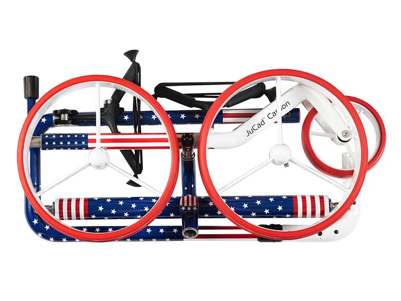 Ten wózek z edycji specjalnej został starannie polakierowany w skomplikowanym procesie, aby uzyskać przyciągający wzrok wygląd w legendarnych kolorach flagi amerykańskiej. Model JuCad Carbon Travel USA 2.0 to obowiązkowa pozycja dla każdego fana USA! Dzięki niezwykle wytrzymałej ramie wykonanej w całości z włókna węglowego, którą zaprojektowaliśmy specjalnie z myślą o szczególnych wymaganiach pola golfowego, wózek ten charakteryzuje się absolutną stabilnością pomimo niewielkiej wagi wynoszącej zaledwie 5,8 kg. Najnowszej generacji pakiet inteligentnych technologii zapewnia dodatkowy komfort i obejmuje ciche silniki bezszczotkowe z dwustronnym hamulcem postojowym zapewniającym bezpieczną przyczepność na najbardziej stromym terenie oraz zintegrowany wskaźnik stanu naładowania. Wózek JuCad Carbon Travel 2.0 USA posiada drugie złącze typu „push-fit”, co pozwala uzyskać miniaturowy rozmiar opakowania na czas podróży. Jest idealnym towarzyszem podróży lotniczych i może być przechowywany w pokrowcu JuCad Travelcover. Płynna regulacja prędkości, funkcja automatycznego ustawiania odległości oraz cichy układ napędowy na wszystkie koła z dwoma wydajnymi silnikami sprawiają, że każda runda golfa staje się przyjemnym doświadczeniem. Opcjonalnie dostępny jest pilot zdalnego sterowania JuCad, który pozwala uniknąć niepotrzebnego pokonywania odległości, zapewniając jeszcze przyjemniejszą rundę golfa.