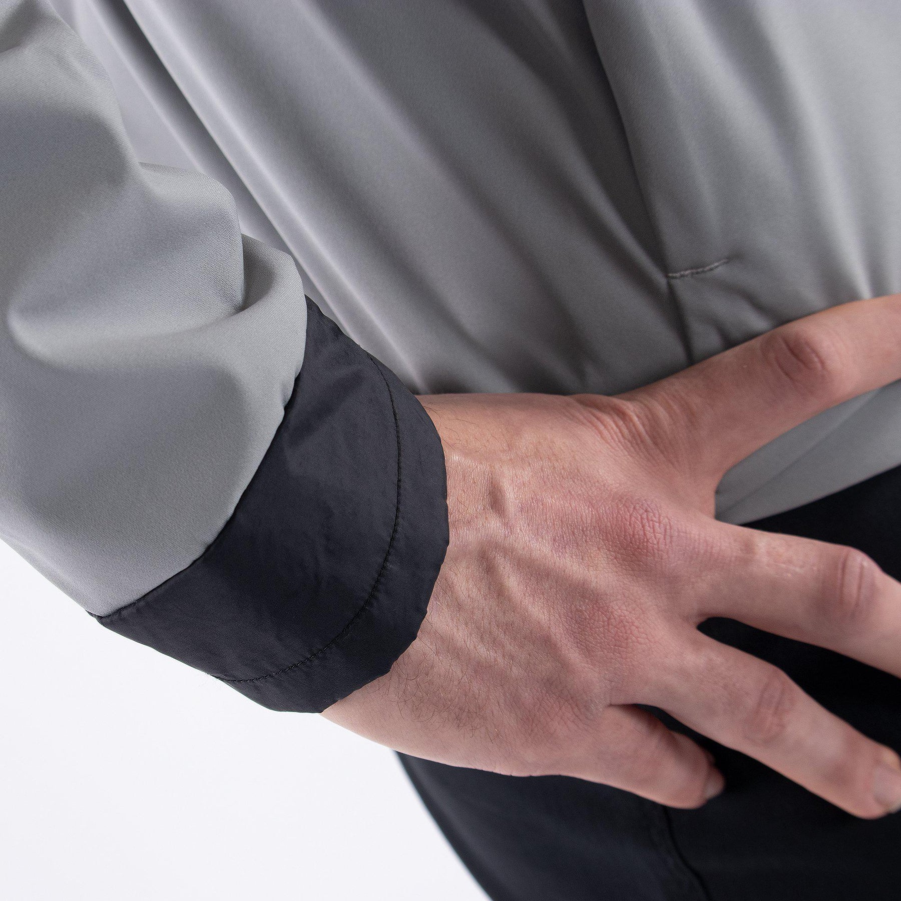 Męska wiatroszczelna kurtka zapinana na całej długości na zamek błyskawiczny ze stylowymi detalami, takimi jak ukośna wyściółka na klatce piersiowej i plecach w połączeniu z miękkim, rozciągliwym materiałem INTERFACE-1™. Częściowy ściągacz w połączeniu z wyściółką na mankietach rękawów. Ładny kształt litery V na środku przodu sprawia, że kurtka dobrze trzyma się na biodrach podczas ruchu.