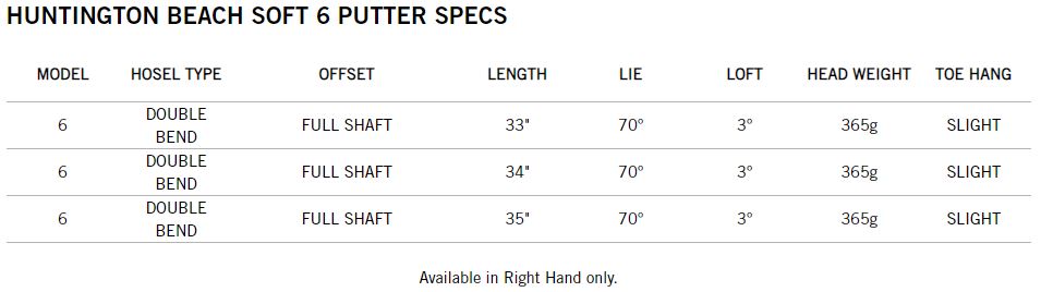 Posiadający średniej wielkości główkę i podwójnie zgięty shaft Huntington Beach SOFT 6 posiada klasyczny wygląd z poprawionym odczuciem z uderzenia. To wszystko zapewnia pewność siebie na greenie.