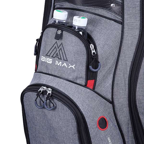 14-komorowy organizer na górze z pełnymi przegrodami utrzyma kije golfisty w porządku, podczas gdy 10 kieszeni, w tym ponadwymiarowa kieszeń na lodówkę, utrzyma wszystko bezpiecznie na miejscu.