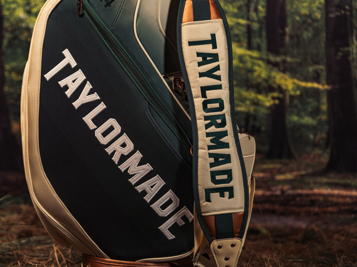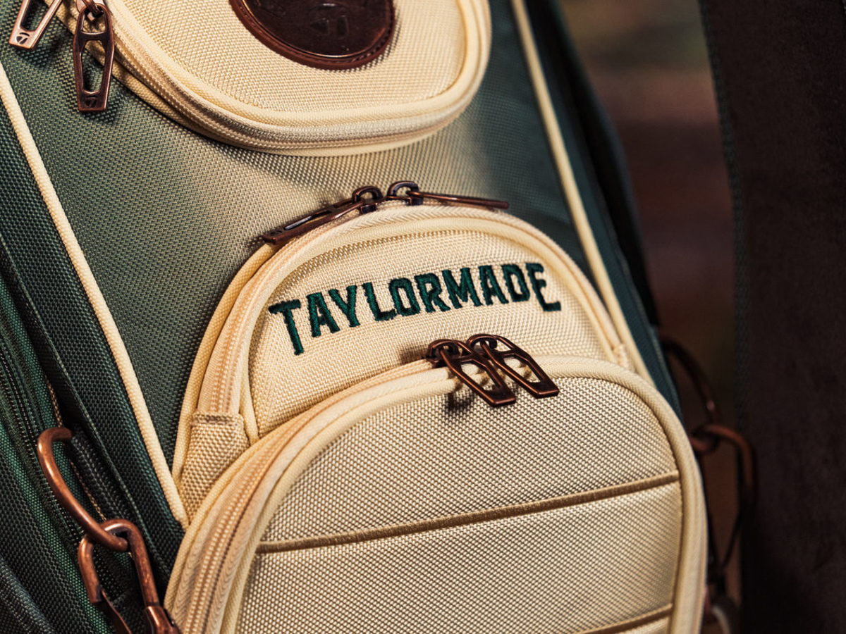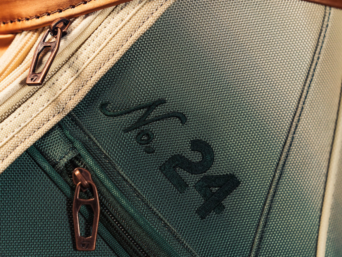 Summer Commemorative Staff Bag prezentuje odcienie zieleni, piaskowej bieli i brązu, które można znaleźć w całym obiekcie.