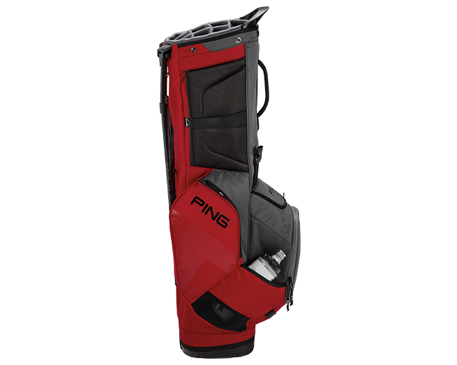 Wyróżniająca się 14 komorami na kije torba Sprawia że kije są chronione i zorganizowane. Dwanaście pojemnych kieszeni zapewnia wygodne przechowywanie akcesoriów w trakcie gry. Nowe złącze paska ułatwia zakładanie i zdejmowanie, a regulowane z przodu paski na ramię z technologią SensorCool umożliwiają łatwą regulację w ruchu, zapewniając dodatkowy komfort. Rozciągliwy kaptur przeciwdeszczowy jest przymocowany wewnątrz amortyzowanej poduszki biodrowej.